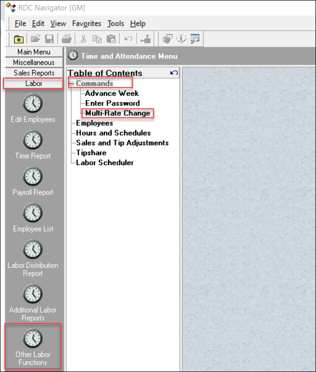 - From the RDC Navigator main page, select Labor>Other Labor Functions>Commands>Multi-Rate Change. It is recommended to unflag the Include Inactive Employees option so that inactive employees retain the rate they had at the time they became inactive.