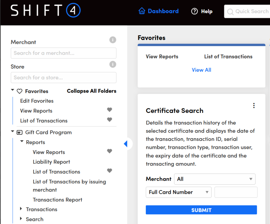 Favorites lets users add frequently visited pages to this section of the dashboard for quick access. To add a page, select the heart icon next to the menu item. The page will then appear in both the Favorites menu and the Favorites widget on the dashboard.