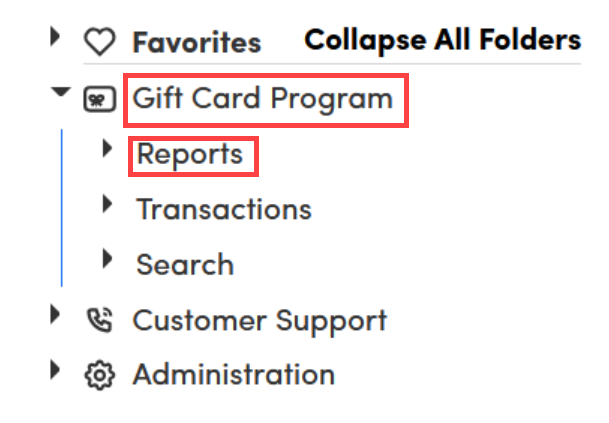 - In the Shift4 Portal, navigate to Gift Card Program > Reports.
