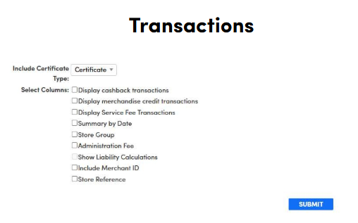 The List of Transactions report allows you to view all gift card activity within a selected date range.