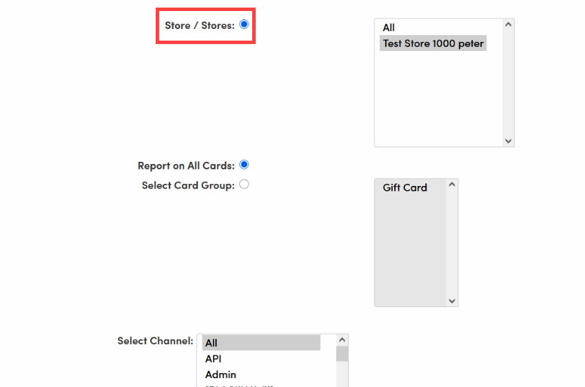 Choose Stores: If the merchant has multiple stores, reports can be run for a single store or for multiple stores at once.
