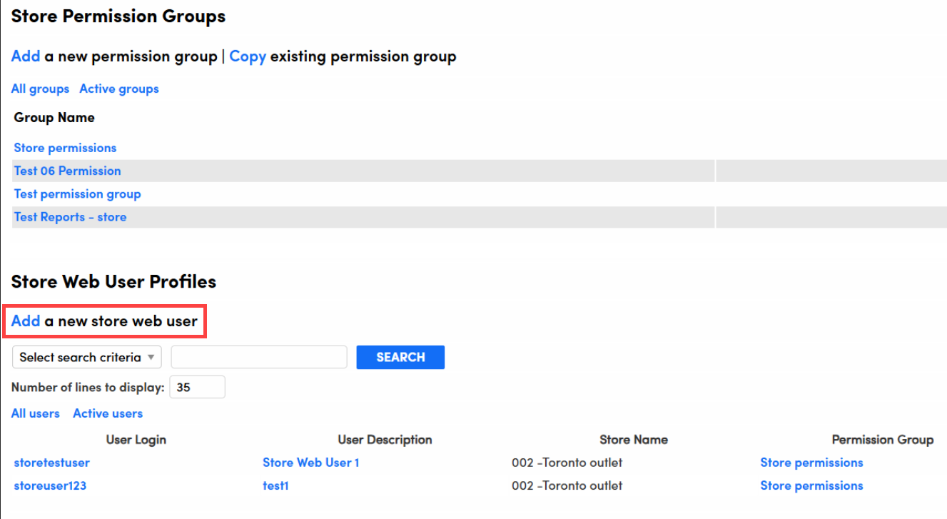 - Store Web Users can view reports or perform transactions for the stores their access is associated with.