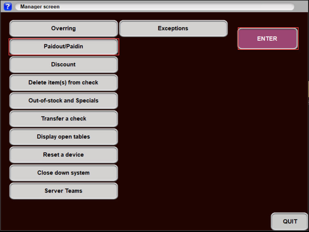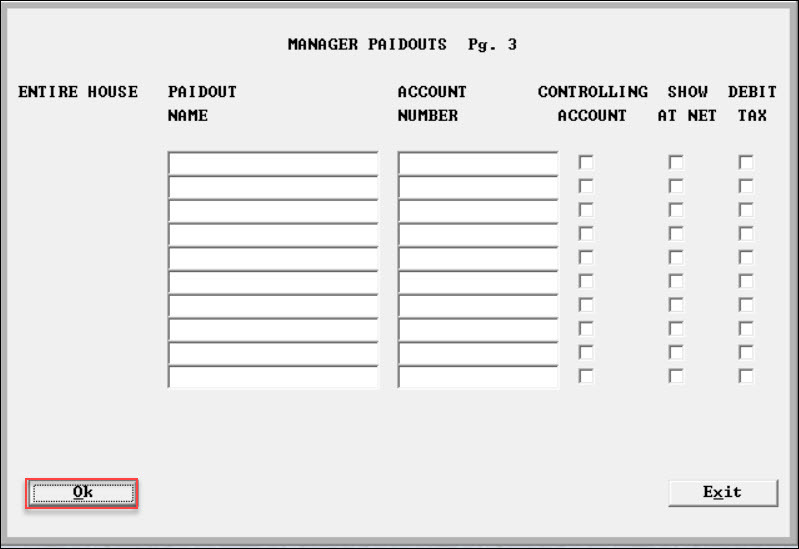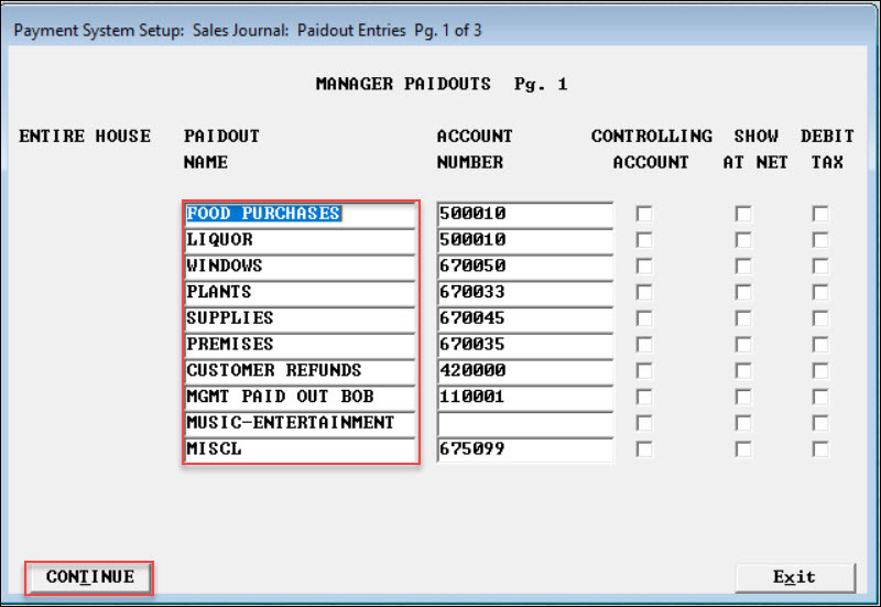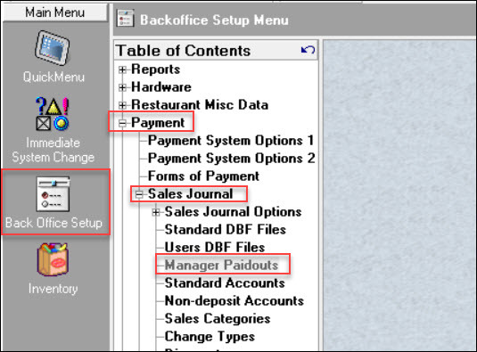 - From the back office main menu, navigate to Back Office Setup > Payment > Sales Journal > Manager Paidouts.