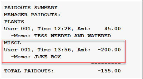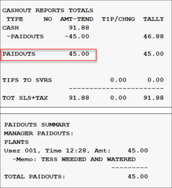 - Paidouts will appear on a cashout under report totals and paidouts summary section.