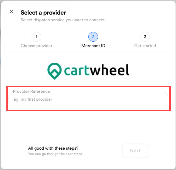 Note: Enter the unique ID for each location. You can find this in your Dispatch Merchant Portal. If it’s not available, contact your dispatch provider to request it. - Select Next.