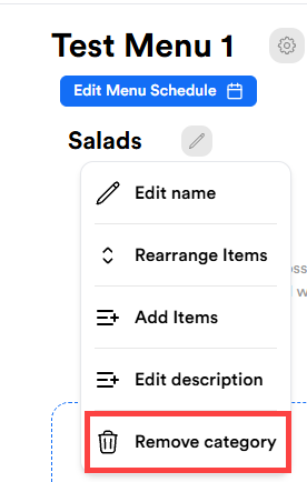 - Remove category and archive items: Removes the category and items from your menu and archives them in your library.
