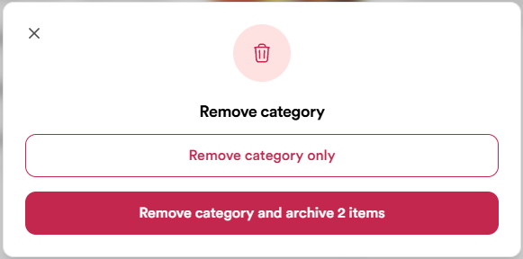 - Remove category only: Removes the category from your menu but keeps the items in your library.