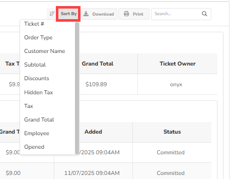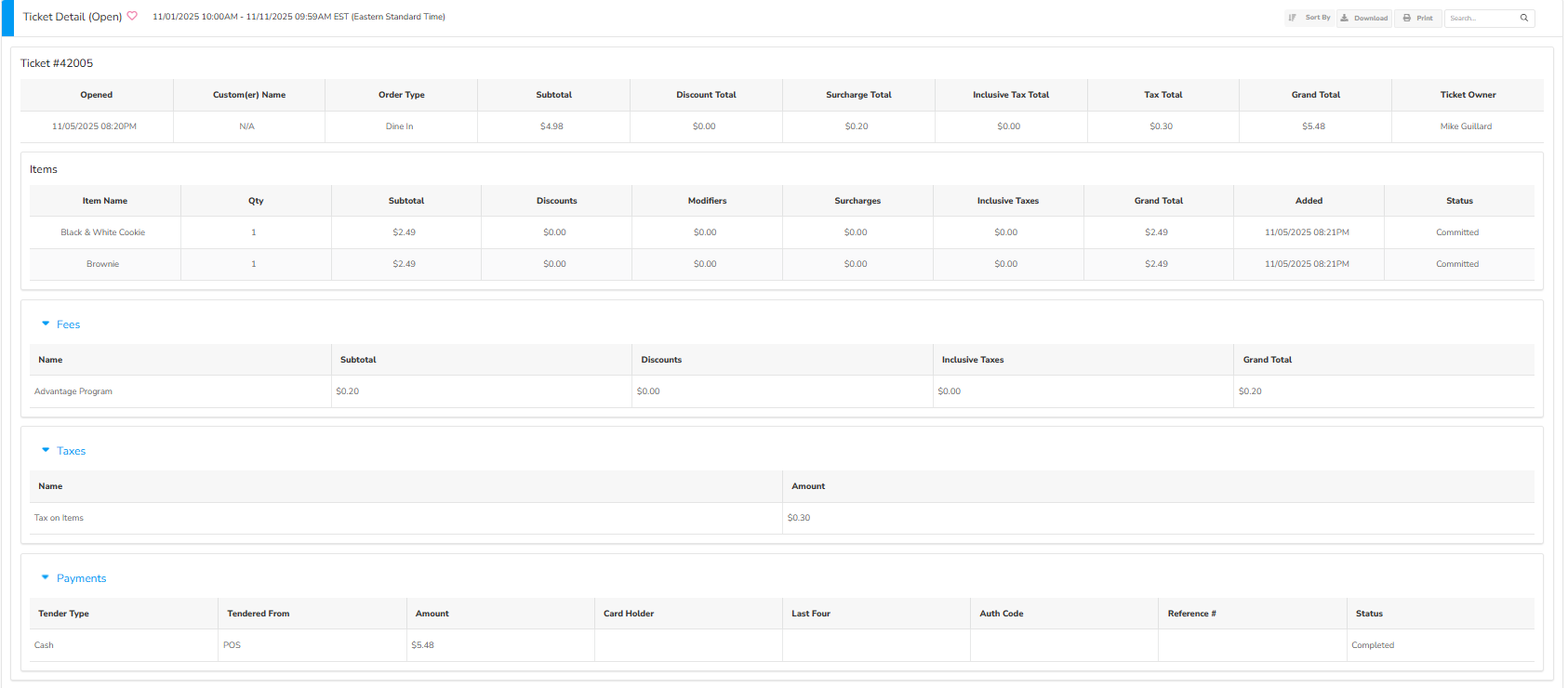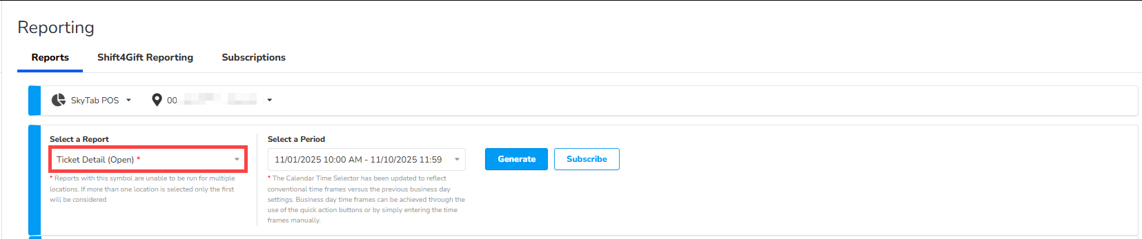 Ticket Detail (Open) Report on SkyTab Lighthouse Business Manager