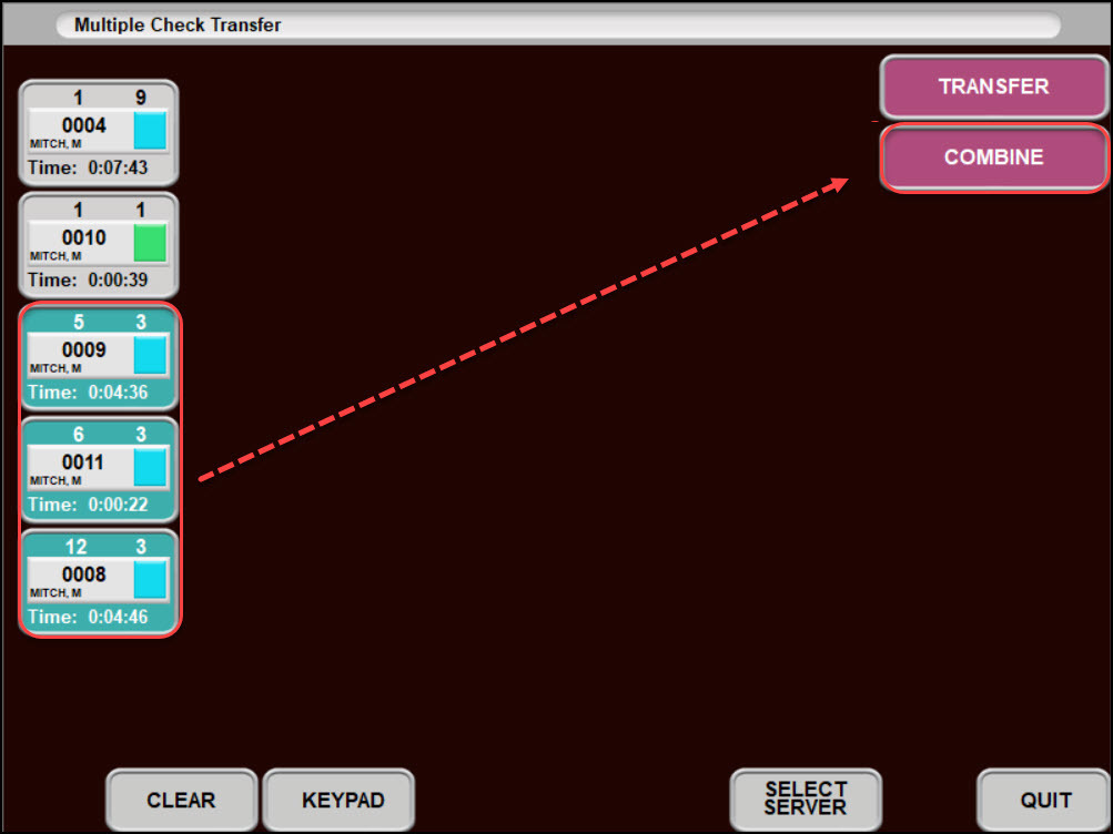 - The server can now input their number and select REOPEN CHECKS to verify the checks were combined.