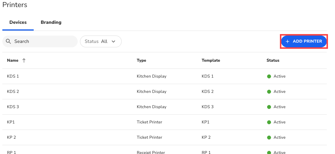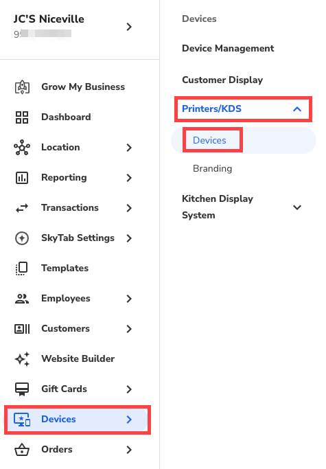 - In Lighthouse Business Manager, navigate to Devices > Printers/KDS > Devices.