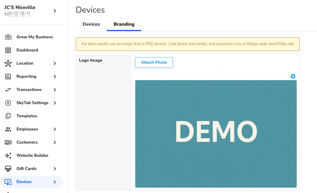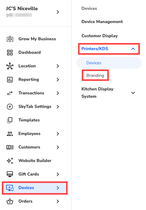 - In Lighthouse Business Manager, navigate to Devices > Printers/KDS > Branding.