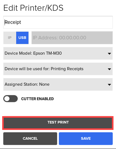 Printers and KDS devices are configured at the location level.