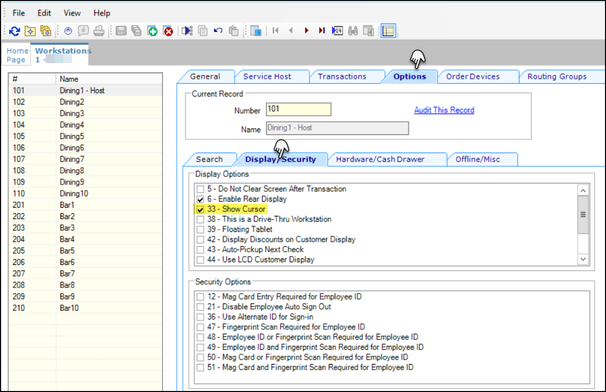 Some Simphony workstations (especially PC-based setups) need the mouse cursor visible for navigation. By default, Oracle MICROS terminals hide the cursor. Use this setting to toggle the cursor display per workstation.