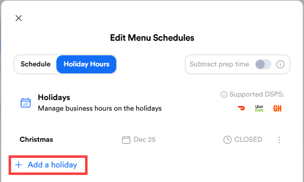 Description: Learn to add or change holiday hours for your menus and 3rd party channels on Shift4 Delivery, ensuring your store displays accurate open and close times on special dates.