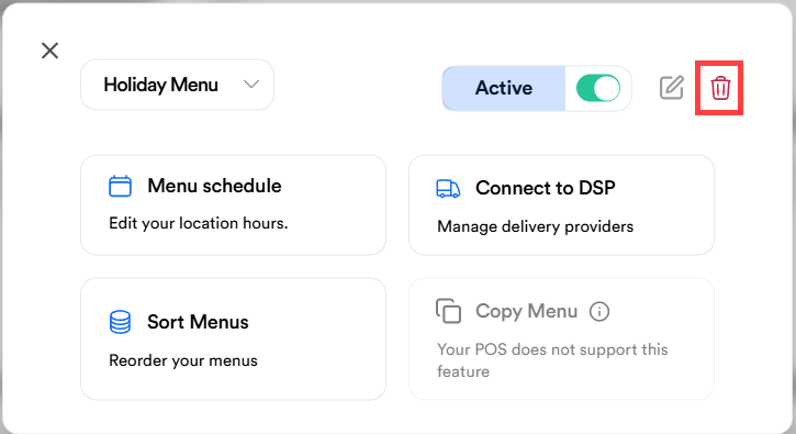 Description: Learn how to delete a menu on Shift4 Delivery for one or multiple locations.