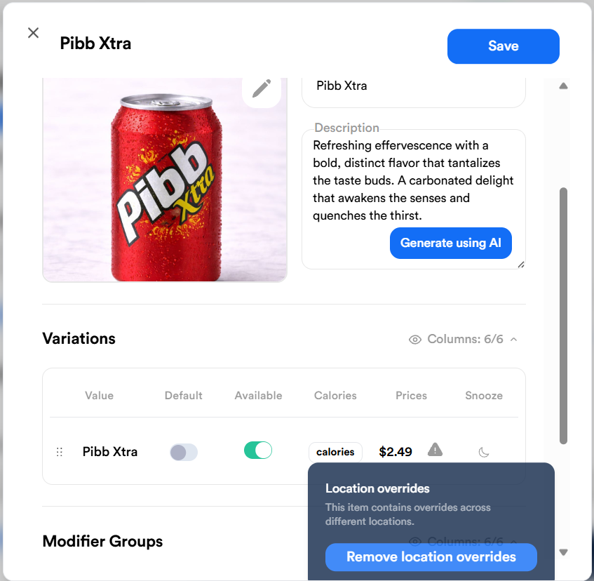 Remove Location-Specific Menu Overrides on Shift4 Delivery