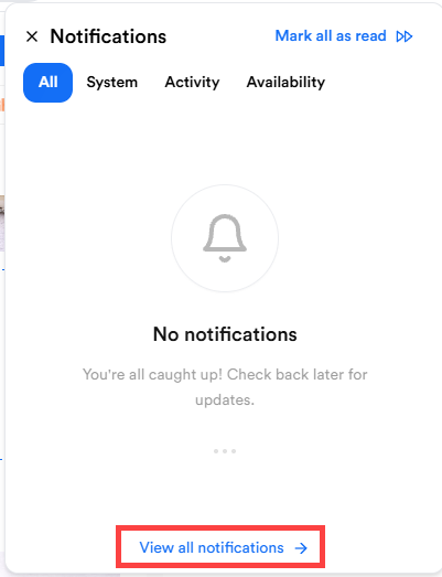 View all notifications: You can interact with alerts directly in the dropdown, or open the full notifications page.