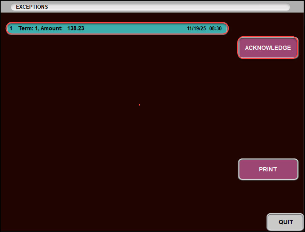 Description: Learn to acknowledge exceptions from the front of the house in POSitouch Manager Screen.