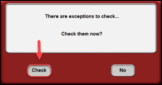 - When a manager logs in, this prompt will appear. Selecting Check will display the exception list.