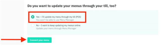 - Select Yes, then select Connect your menu.