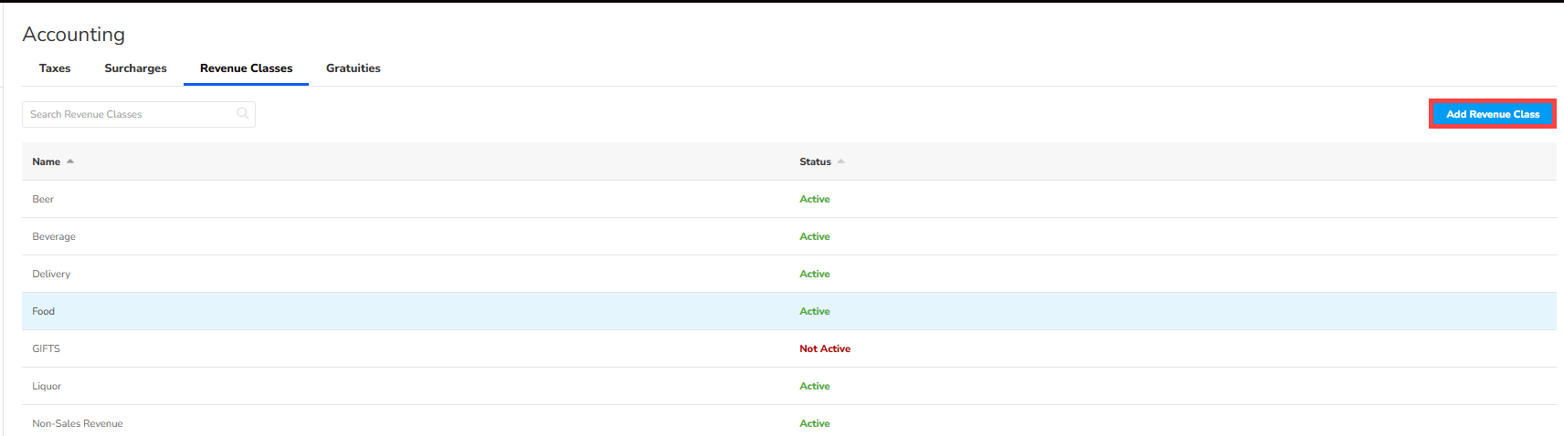 Configure Revenue Classes on SkyTab Lighthouse Business Manager