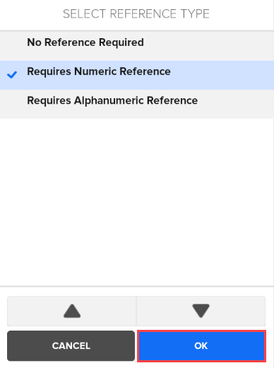 Require Reference Number (Optional): Go to the Reference section, select the preferred reference type as shown in the screenshot below, and press the blue OK button.