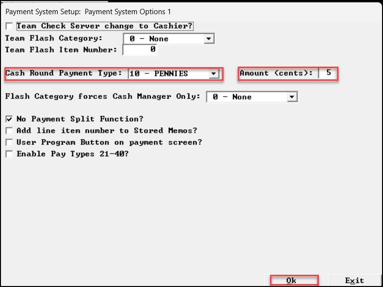 - Under the Cash Round Payment Type drop-down menu, select PENNIES.