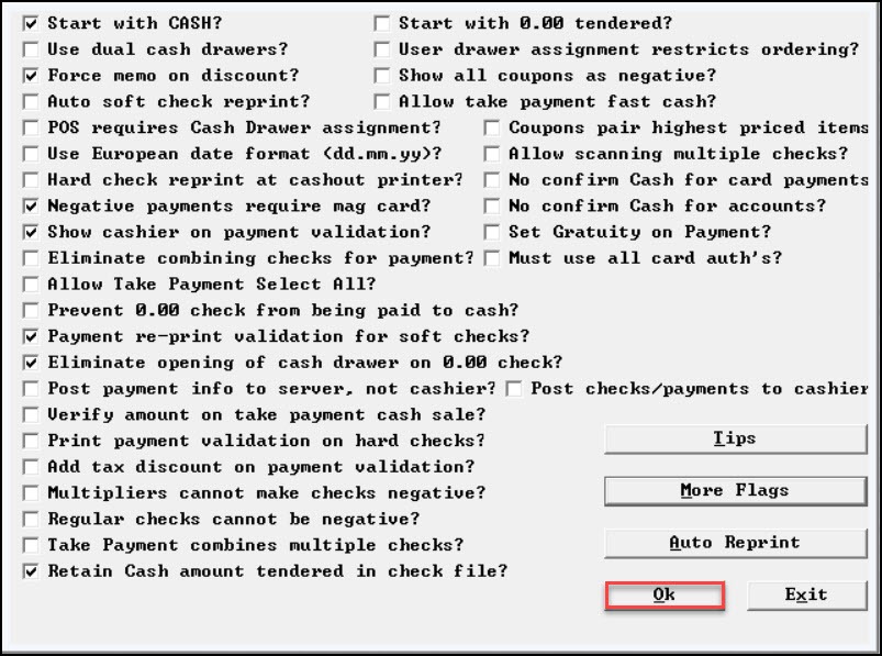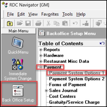 - From the Back Office Setup menu, select Payment > Payment System Options 1.