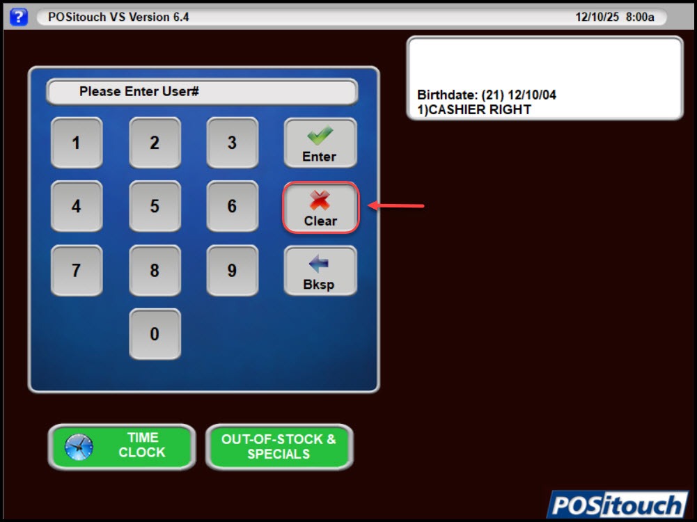 - From the login screen, tap the Clear button two times.