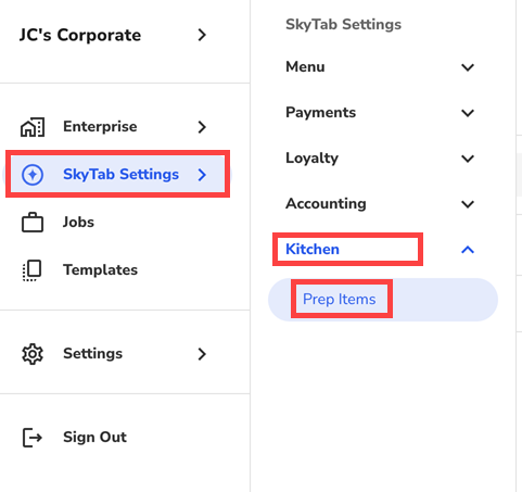 - Navigate to SkyTab Settings > Kitchen > Prep Items.