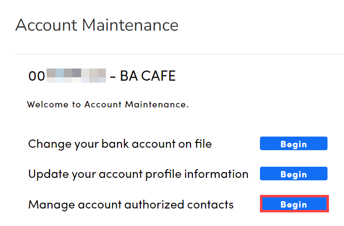 If you are unable to add or remove an authorized contact through Lighthouse Business Manager > Account Maintenance due to an error—after you have tried standard troubleshooting steps such as clearing your cache and cookies or reloading the page—you may complete the Add/Remove Merchant form. Once completed, please email the form to Account Maintenance for processing.