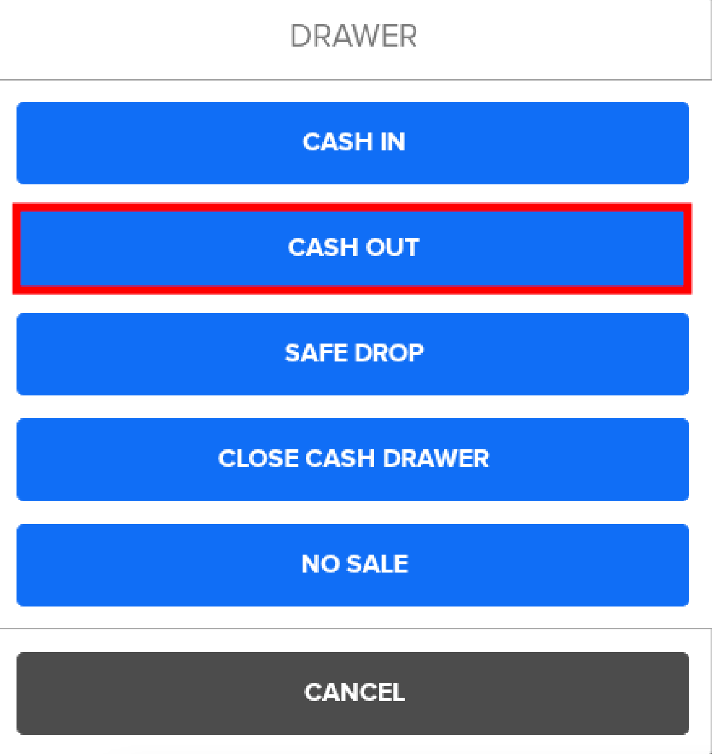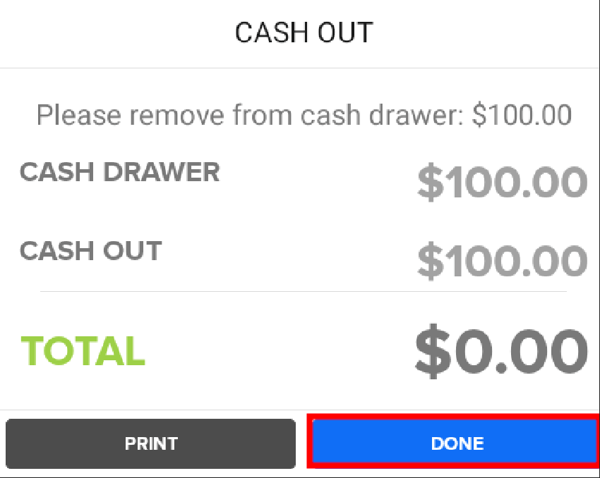 - Select the Cash Out drawer action.