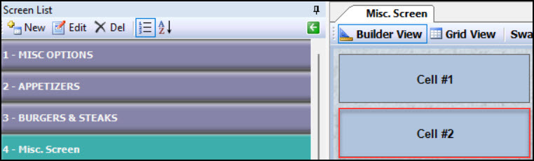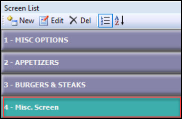 - Select the desired screen for the item to reside. (In this example, the item will appear on a screen labeled Misc. Screen)