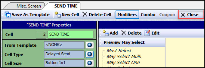 Description: Learn to configure a delayed send cell type in POSitouch, which allows servers to type in a time and/or select a future date when the order should be sent to the prep stations. This article explains the use of a delayed send button from the front of the house terminal.