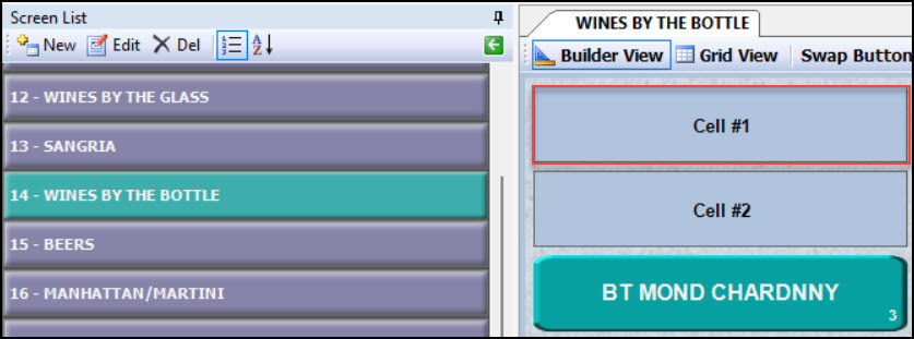 - Select the desired screen for the item to reside. (In this example, the item will appear on a screen labeled WINES BY THE BOTTLE.)