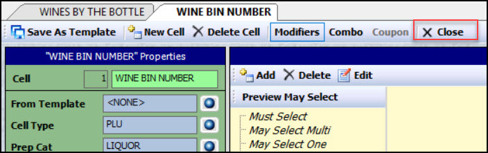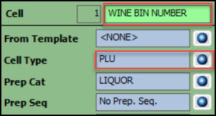 - Select the PLU cell type. (In this example, WINE BIN NUMBER.)