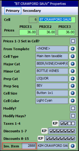 - Ensure that the specific bin number typed in matches the "Inv. Item" field for the wine ordered. (In this example, the "Inv. Item" number is 2888 for the wine “BT Crawford Sauv”.)