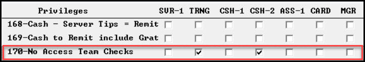 - Optional flag - User Privilege #170 -No Access Team Checks will not allow any user groups with this flag set access to team checks.