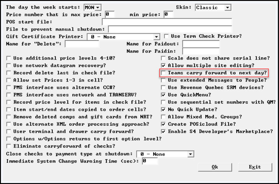 - Optional flag: Set this flag to have the teams carry forward to the next business day. This is useful for sites that have the same teams working together daily.