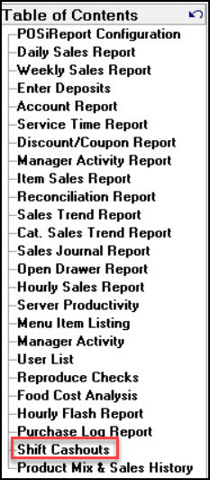 - Select Shift Cashouts.