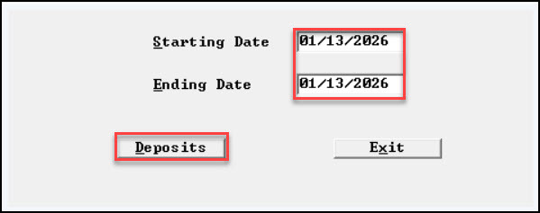 - Enter Starting Date, Ending Date, and select Deposits to continue.