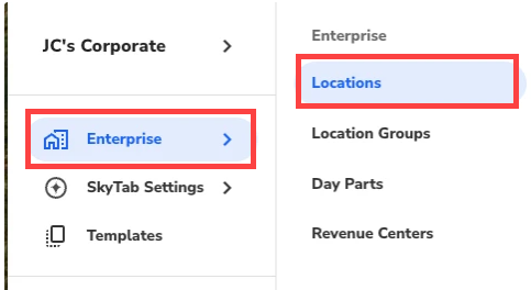 - In SkyTab Multi-Location Management, navigate to Enterprise > Locations.