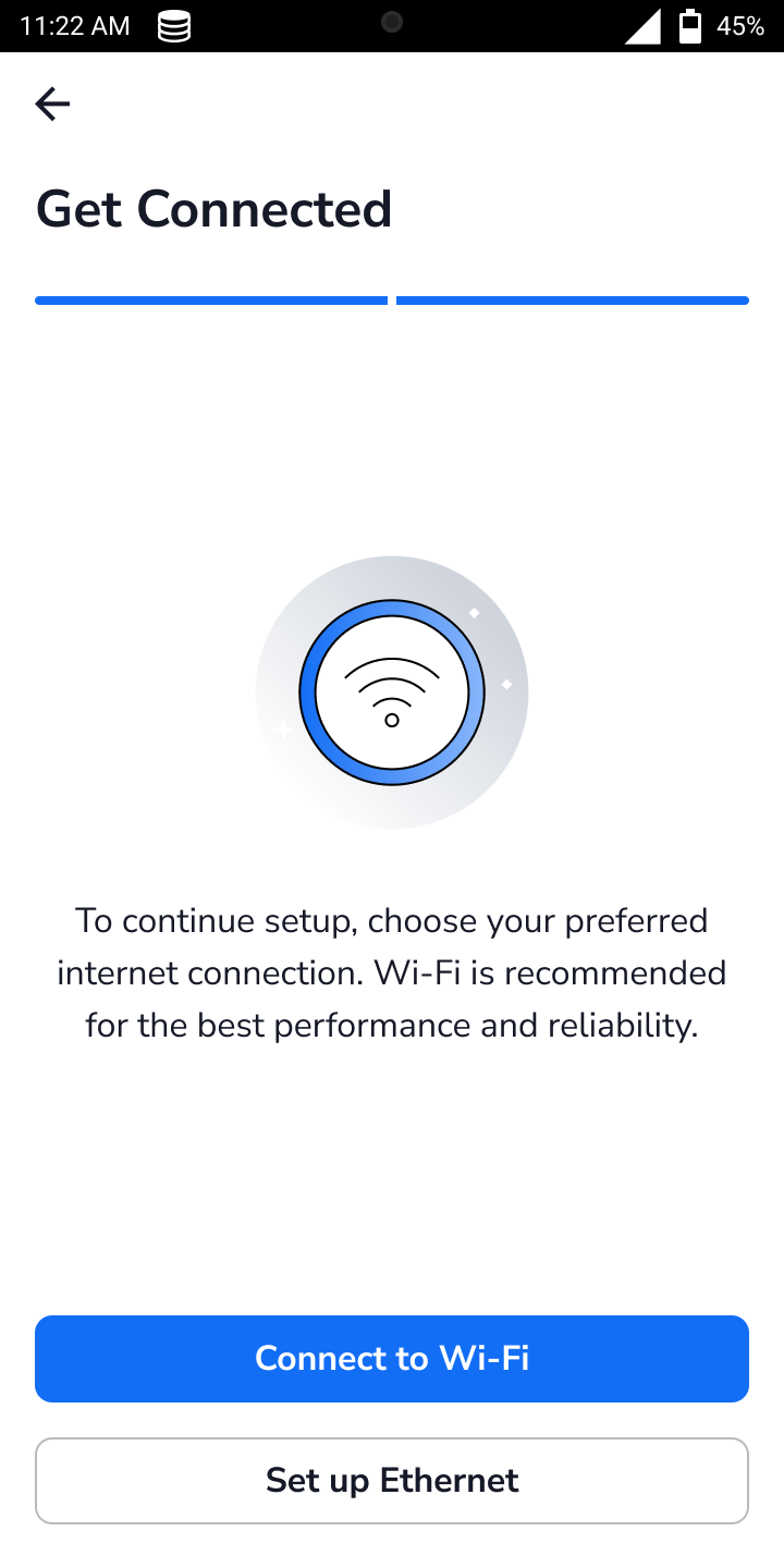 If you prefer to use Cellular as your internet connection, refer to the Cellular Onboarding Flow section below.