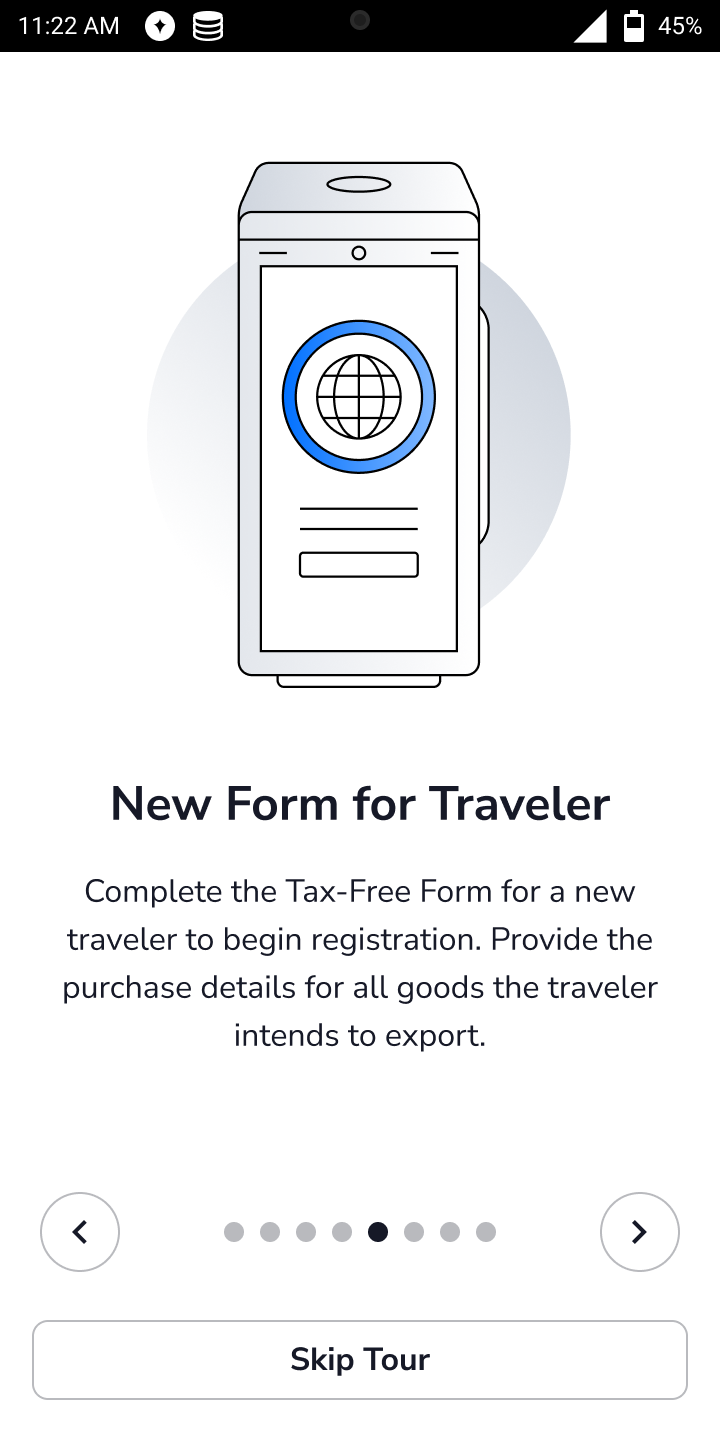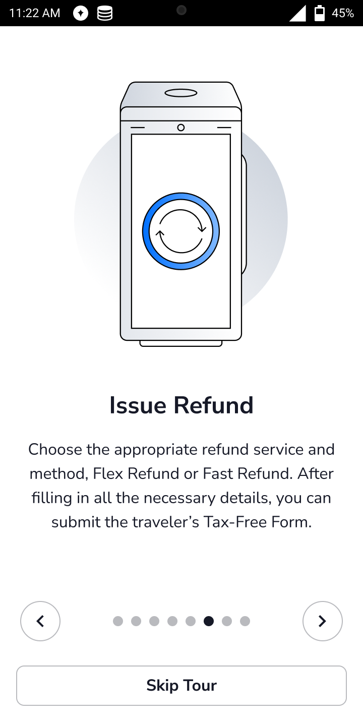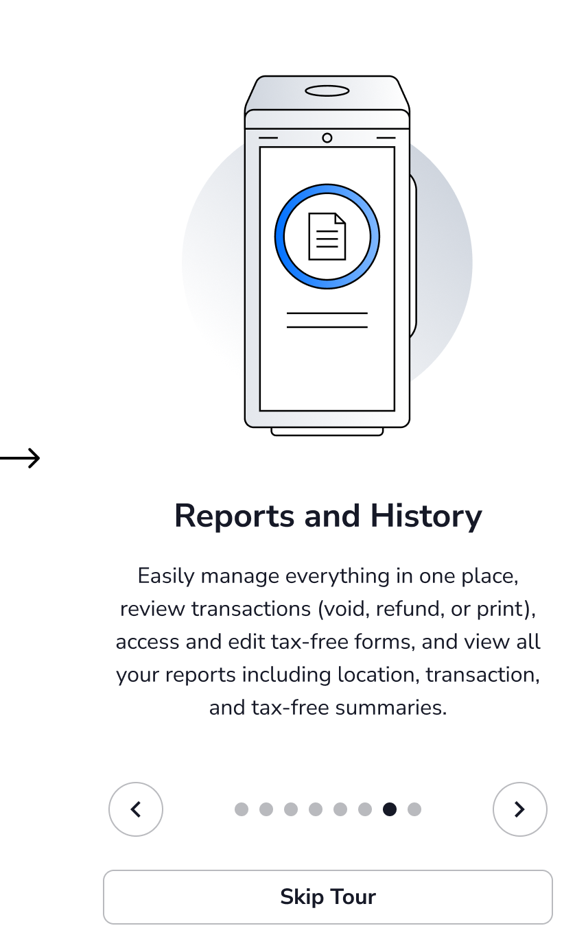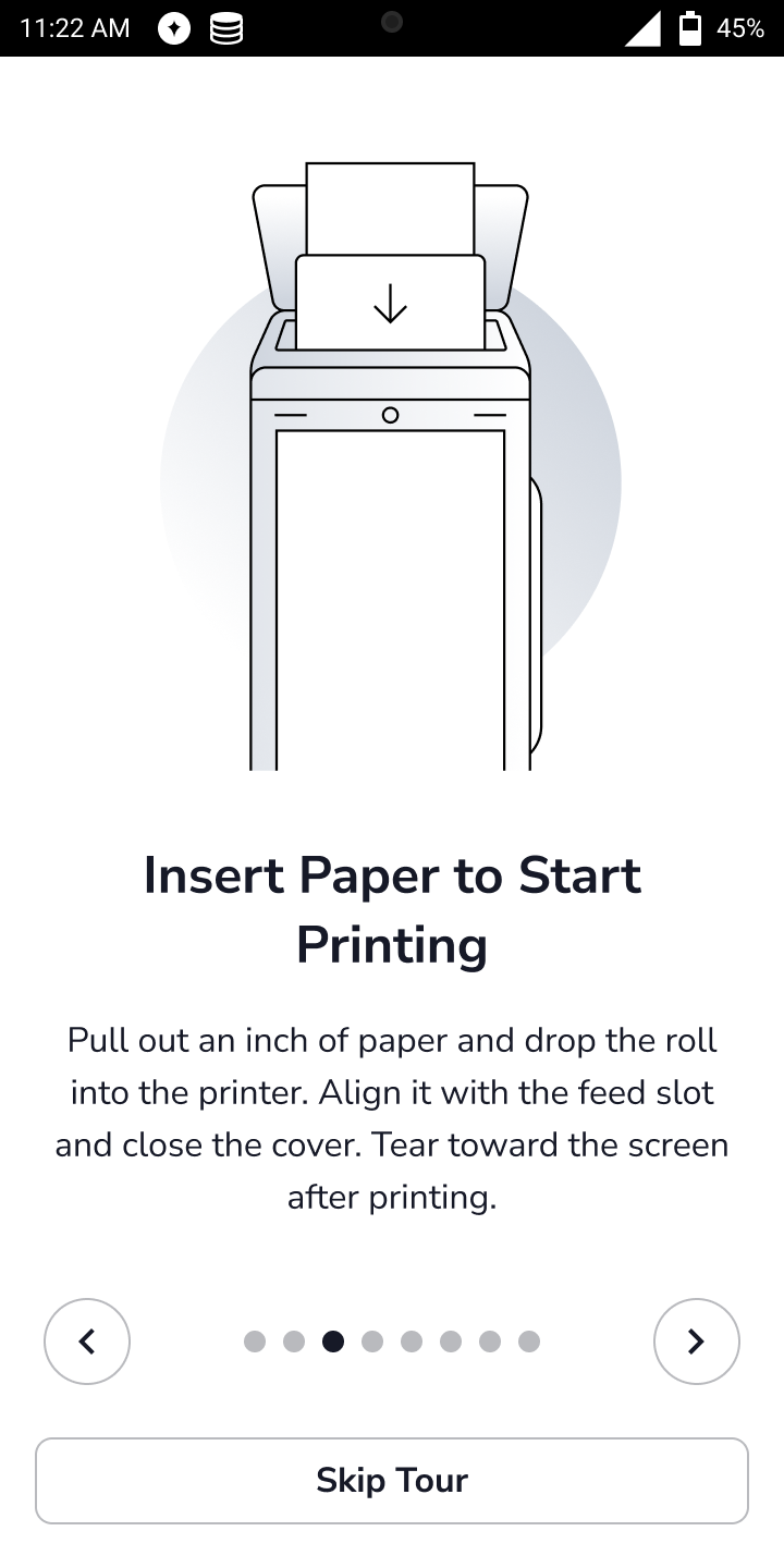 After the internet setup, an optional app tour is displayed to provide helpful tips and guidance for the best results. You may select Skip Tour at any point during the app tour. Use the arrows on the screen to advance to the next window or return to previous windows.