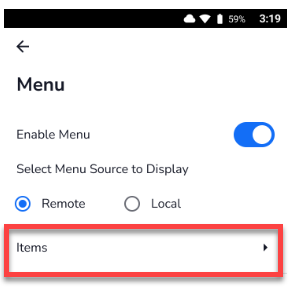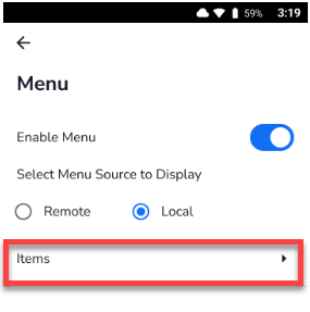 Local Menu uses the menu stored on the device. All menu items are created, edited, and managed directly on the device.