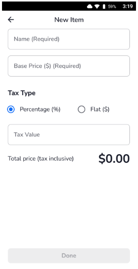 - Tax type (percentage or flat)