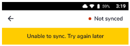 If you see the error “Unable to sync. Try again later”, the device is not currently syncing with LBM, and the menu will not load.