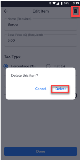 - Select the trash icon and confirm Delete to remove the item.