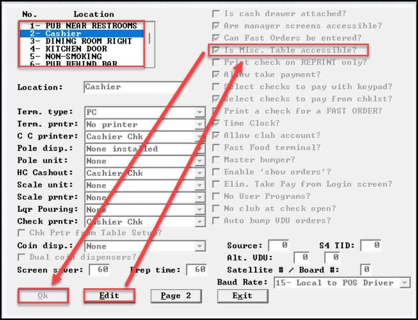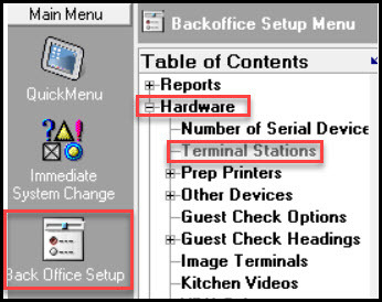 - From the back office main menu, select Back Office Setup > Hardware > Terminal Stations.