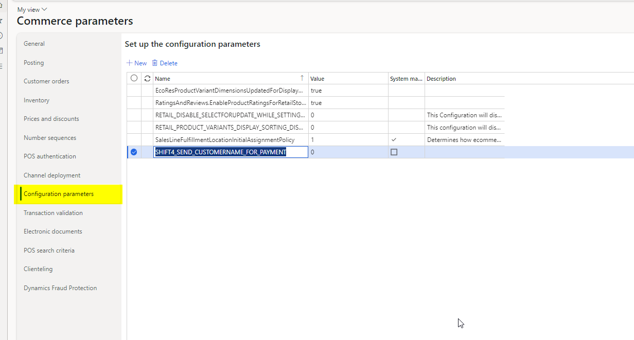 - Navigate to Retail and Commerce > Headquarters setup > Parameters > Commerce parameters.